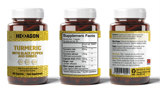 Hexagon Turmeric with Black Pepper & Ginger Vegan Capsules